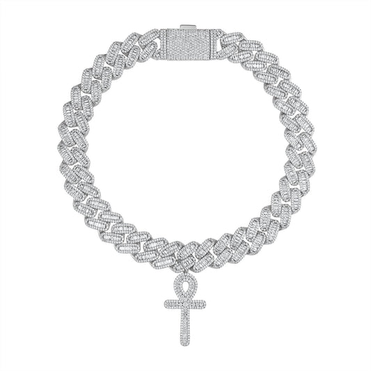 Ankh Cross White Gold Baguette Cuban -