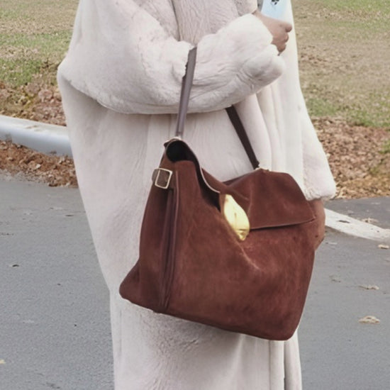 Crafted in rich suede, the EJ Carryall features a relaxed, slouchy silhouette. Its spacious interior makes it ideal for work, travel, and everything in between balancing softness with structure for everyday elegance.